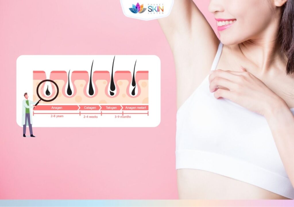 การเจริญเติบโตของขนแบ่งเป็น 3 ระยะคือ ระยะเติบโต (Anagen Phase) ระยะพัก (Catagen Phase) และระยะหลุดร่วง (Telogen Phase) แน่นอนว่าขนบนผิวของเรา ไม่ได้ขึ้นมาอยู่ในระยะเดียวกันหมดทุกเส้น บางเส้นอาจจะอยู่ในระยะเติบโต บางเส้นอาจจะอยู่ในระยะอื่นๆ